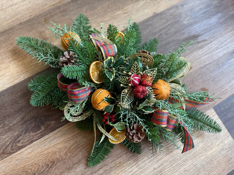 (colours may vary on the Christmas pick and ribbons)